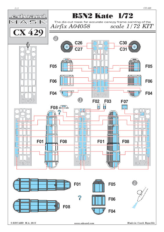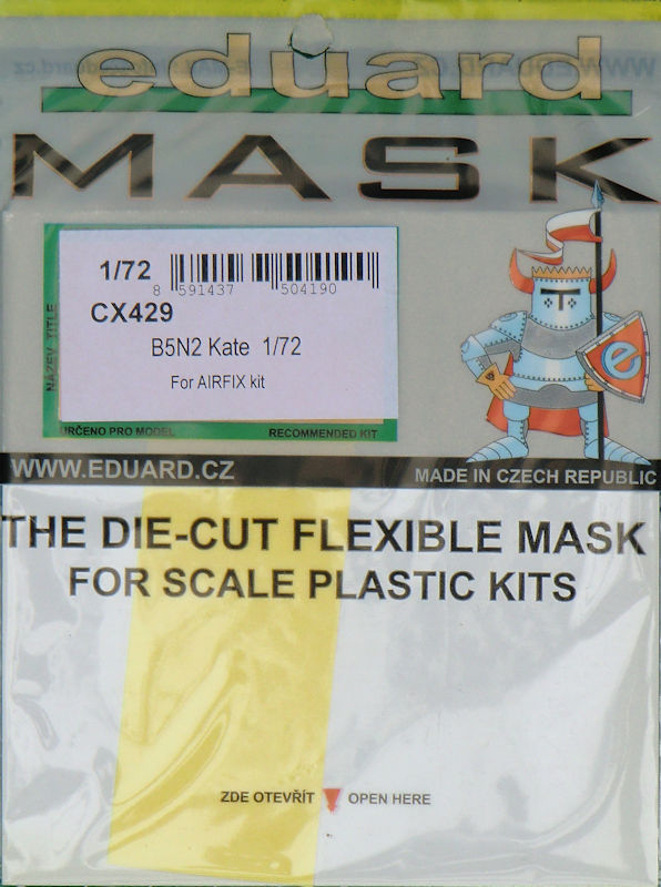 Für den Bausatz der Nakajima B5N2 von Airfix hat eduard ein Maskenset herausgebracht. Es enthält einen gelben Bogen für die Kanzel und die Hauptfahrwerksräder des Bausatzes.