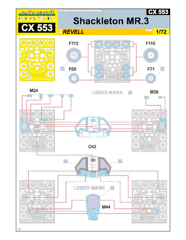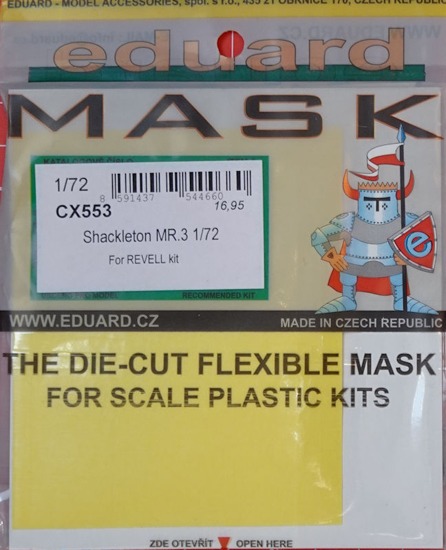 Für den gelungenen Revell-Bausatz der Avro Shakleton MR. 3 in 1/72 hat eduard ein Maskenset im Angebot. Diese Maskenset enthält einen gelben Bogen für die Klarsichtteile und die Fahrwerksräder des Bausatzes.