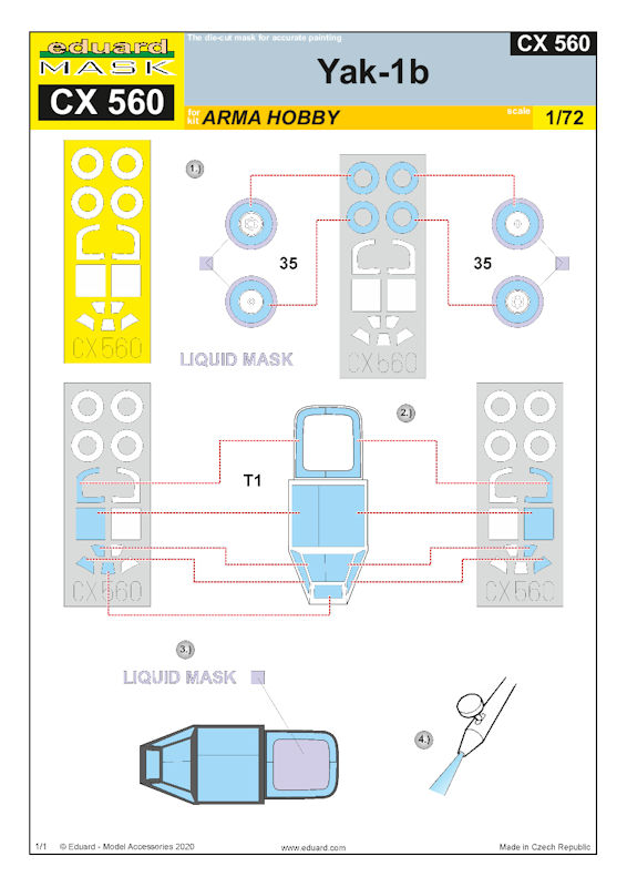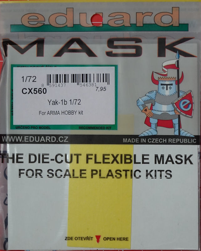 Für die Bausätze der Jakowlew Jak-1b von Arma Hobby in 1/72 hat eduard ein Maskenset herausgebracht. Im Expert Set liegen zwar gelbe Masken bei aber teilweise gab es auch zwei Spritzlinge im Bausatz. Die Jak-1b gibt es bei Arma Hobby auch ohne Ätzteile und Masken(Kit 70028). Diese Maskenset enthält einen gelben Bogen für die Kanzel und die Fahrwerksräder des Bausatzes.