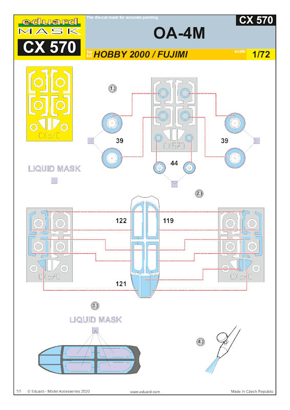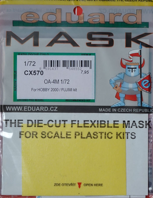 Für die verschiedenen Bausätze der Douglas OA-4M von Fujimi und HOBBY 2000 hat eduard ein Maskenset herausgebracht. Diese Maskenset enthält einen gelben Bogen für die Kanzel und die Fahrwerksräder des Bausatzes.