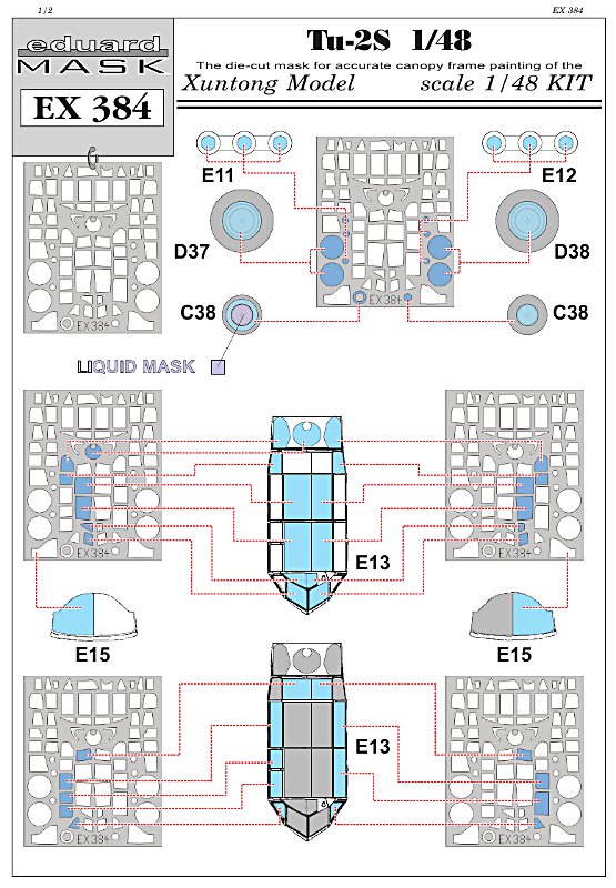 Für den Bausatz der Tu-2 von Xuntong (FirstLook) bietet Eduard bereits nach recht kurzer Zeit einen Maskensatz an. Dies ist sehr erfreulich, da die Tu-2 eine Menge abzuklebende Scheiben hat und solch eine Aufgabe mit den Sätzen von Eduard sehr zügig und gut zu erledigen ist.