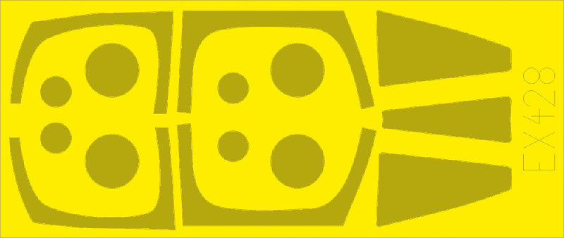 Auch wenn die Masken des tschechischen Herstellers etwas flexibel sind, so können sie doch die komplexen Blasenhauben nicht vollständig abdecken. Daher gibt es in diesem Satz für den beweglichen Haubenteil lediglich die Randbegrenzungen und den innenbereich muss man selbst abdecken. Eduard empfiehlt dafür Flüssigmaske (wie Maskol), man kann dies aber auch mit den Resten des kleinen Bogens oder anderem Abklebeband auffüllen. Weiterhin sind natürlich Masken für den festen Kanzelteil vorhanden. Auch die Felgen können zur Bemalung der Reifen abgeklebt werden.
