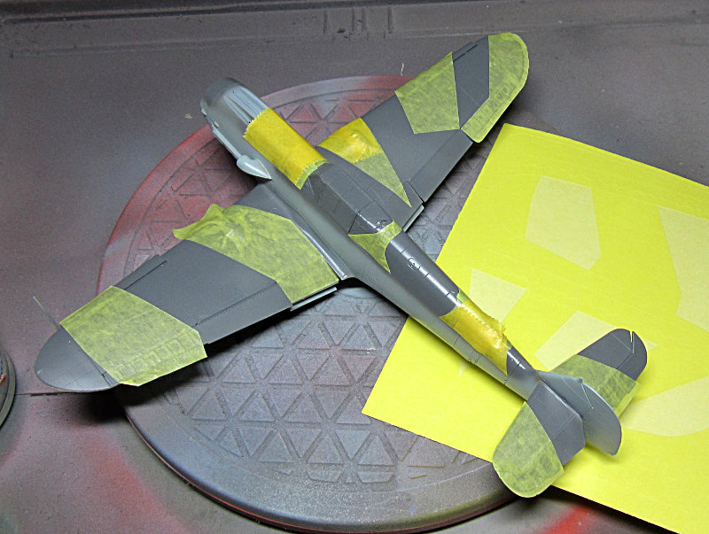 Eduard nutzt auch hier das bekannte Kabuki-Tape, um daraus die Masken zu schneiden. Dadurch ist die Anpassung der Masken an den Rumpfverlauf des Modells natürlich viel einfacher, aber eine Wiederverwendung sehr schwierig. Die Aufteilung der Tarnflicken ist etwas schwierig nachzuvollziehen, denn Rumpfseiten, Höhenleitwerk und Flügeloberseite haben jeweils eigene Masken. Eigentlich ne gute Idee, aber leichter wird es dadurch nicht... schließlich müssen die beiden Seiten zueinander passen. Die Anleitung (pdf) sollte man vorher gut studieren und auf dem Modell gut anpassen, bevor die nächste Farbschicht folgt. Ich fand die Masken bei meiner Bf 109G-4 auf dem Rumpf etwas knapp (s.u.).