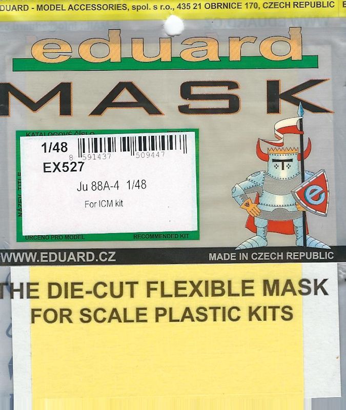 Eduard hat für die Ju-88-Reihe von ICM jetzt auch die seine typischen gelben Lackiermasken herausgebracht. Die Anleitung führt auf zwei Seiten durch die korrekte Platzierung der rund 80 Masken für Verglasung und Fahrwerk. Ich liebe die Eduard-Masken und finde, dass sie eine immense Arbeitserleichterung bedeuten. Und dies gilt natürlich verschärft für ein Vorbild mit so einer umfangreichen und komplexen Verglasung wie die Ju 88A. Das Set ist zwar ausdrücklich der A-4 gewidmet, dürfte aber auch problemlos für andere frühe Varianten des deutschen mittelschweren Bombers zu verwenden sein.