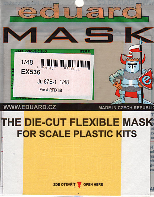 Schon vor erscheinen des Bausatzes hat Eduard eine ganze Reihe von Zubehörsätzen für Airfix' neue Junkers Ju 87B-1 (First Look) herausgebracht. Wie nicht anders zu erwarten, gibt es auch einen Satz mit den bekannten vorgestanzten Masken aus gelbem "Kabuki-Tape".