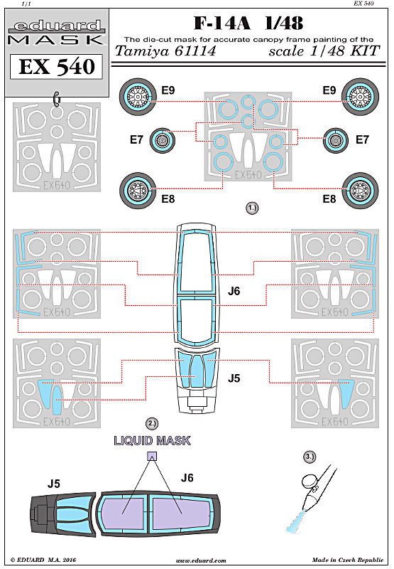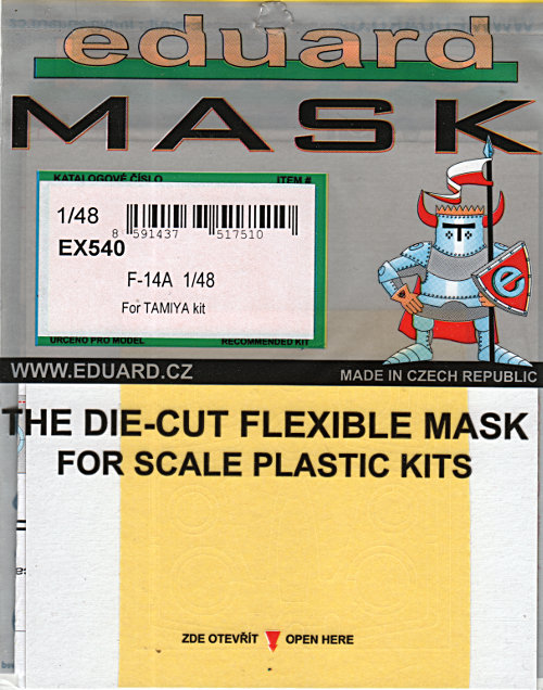 Für den Bausatz der F-14A von Tamiya (First Look) hat Eduard verschiedene Detail- und Zubehörsätze herausgebracht. Nicht alles davon ist wirklich nötig, denn der Grundbausatz von Tamiya ist wirklich gut gestaltet. Allerdings gibt es sicherlich viele unter uns Modellbauern, die einem Quäntchen mehr an Details nicht abgeneigt sind. Wie nicht anders zu erwarten, gibt es auch einen Satz mit den bekannten vorgestanzten Masken aus gelbem "Kabuki-Tape".