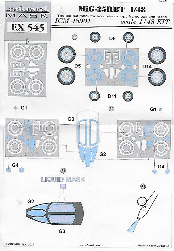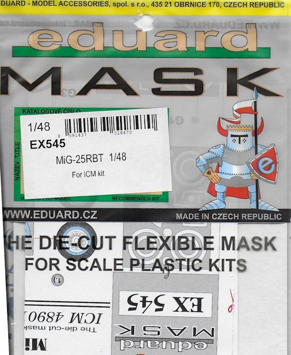 Als Lackierhilfe für die Cockpithaube und die Räder bietet eduard seine bewährten Masken auch für die MiG-25 RBT an. Sie ist auch für die von Revell angekündigte geeignet.