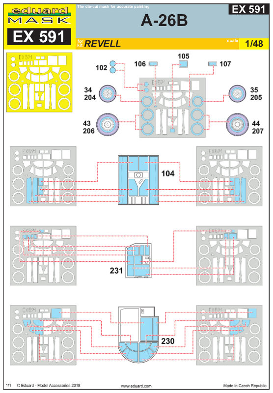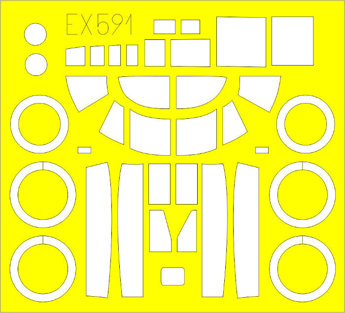 Dieser enthält Masken für Verglasung der Cockpitkanzel und der des Bordschützen. Da diese aus wenig gewölbten Flächen bestehen, wird keine Flüssigmaske benötigt. Weiterhin gibt es Masken für die Felgen der Hauptfahrwerksräder und des Bugrades.