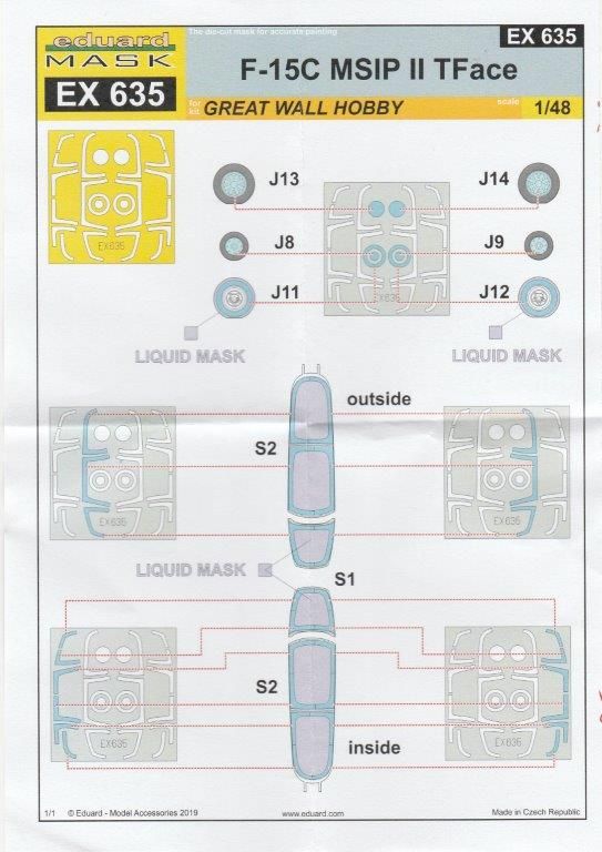 Für die von GREAT WALL HOBBY erschienene F-15 C MISP II liefert Eduard den passenden Maskensatz. In der TFace Variante erlaubt er die Maskierung der Cockpithaube auch auf der Innenseite. Für die Felgen liegen Masken bei und erleichtern auch hier die Lackierung. Die Anleitung ist selbsterklärend.