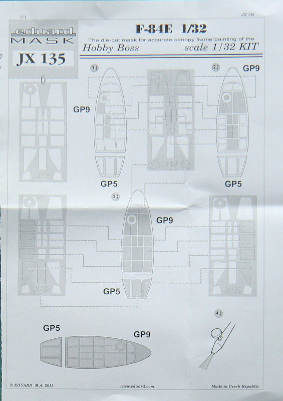 Fazit: Ein praktisches Maskenset von Eduard für den Bausatz der Republic F-84E Thunderjet in 1/32 von HobbyBoss. Es ist uneingeschränkt zu empfehlen.