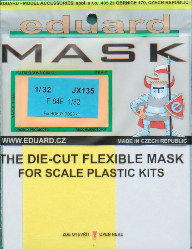 Für den gelungenen HobbyBoss-Kit der Republic F-84E Thunderjet in 1/32 hat Eduard ein Maskenset herausgebracht. Damit können die beiden Klarsichteile maskiert werden. Bei der Schiebehaube muss hier nicht mit Maskol nachgeholfen werden.