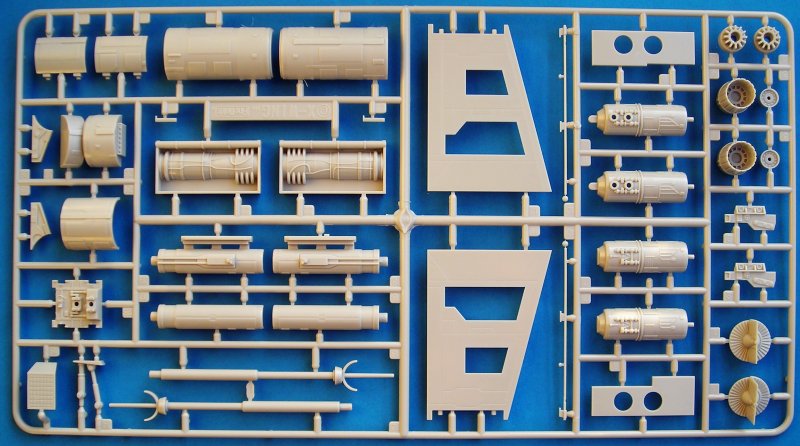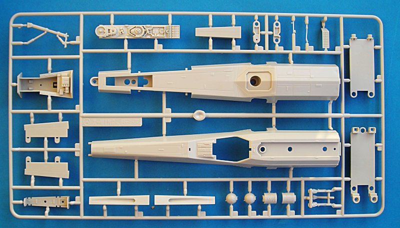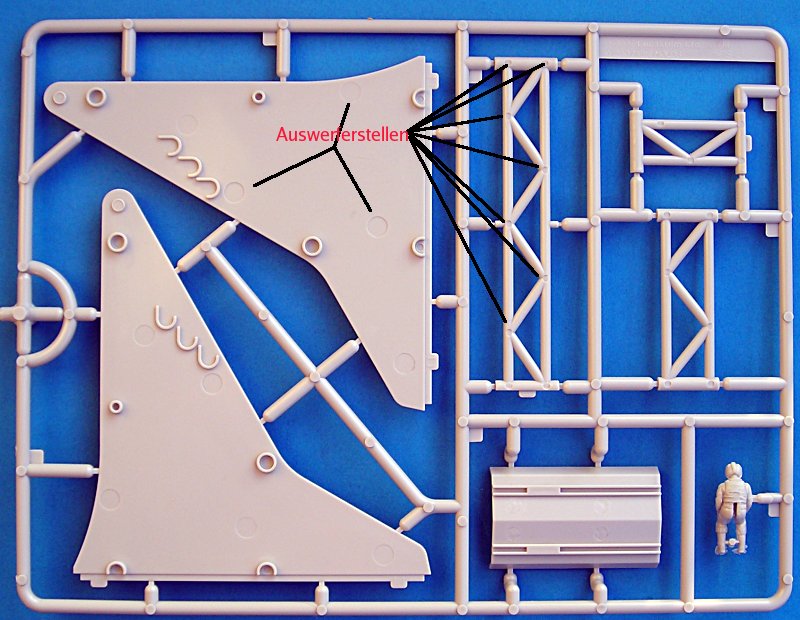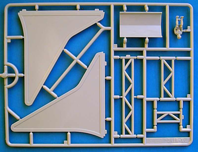 In der Box findet man 4 Spritzlinge für den Jäger, einen klaren für die Kanzel und 3 für einen schönen Präsentationsstand. Insgesamt ist der Bausatz für weniger Modellbau erfahrene SW-Fans gedacht, also ein sog. Snap-Kit. Allerdings ist dabei kein Abstrich an der Qualität gemacht worden. Das Material ist etwas härter als das sonst im Modellbau übliche, was das entfernen der unvermeidlichen Auswerfer Markierungen etwas erschwert.