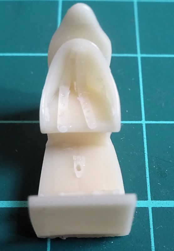 Das Resin-Cockpit (Wanne, Steuerknüppel, Instrumentenbrett) erleichtert die Innenraumgestaltung. Die Detaillierung der Seitenwände und Einzelteile ist für den Maßstab sehr gut. Am Sitz sind die Gurte sind angegossen.