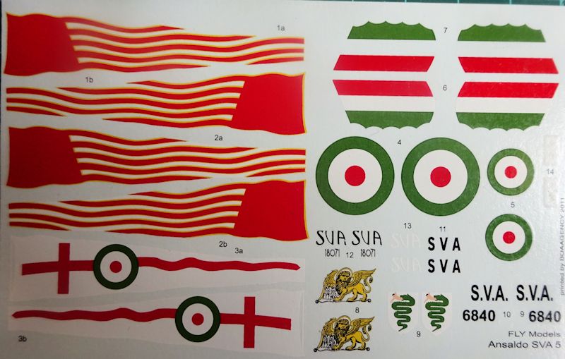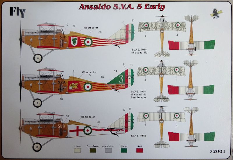 Bemalung: Für drei italienische Maschinen sind Abziehbilder vorgesehen, die alle mit unbemalten Holzrümpfen und einigen schönen Seitengrafiken versehen sind. Die Abziehbilder scheinen im Register zu sein.