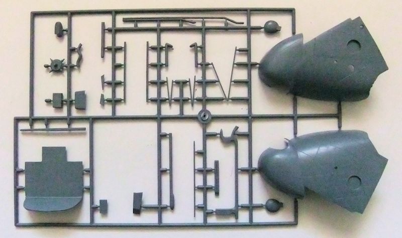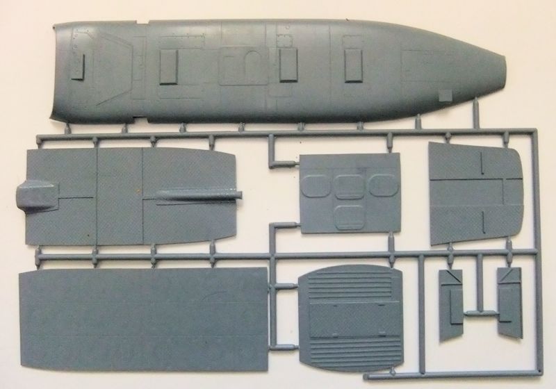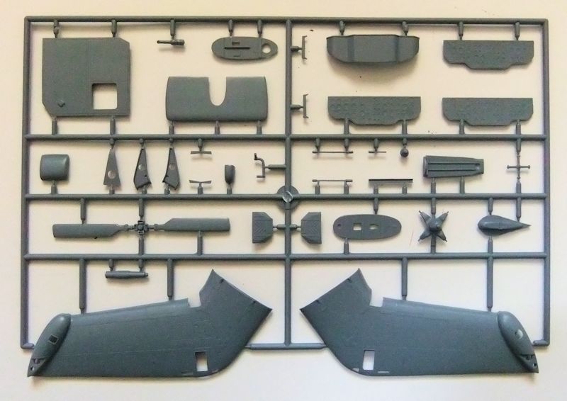 Eine wahre Augenweide sind die Gravuren am Rumpf. Viele Strukturen und fein versenkte Nieten die das Original der Maschine perfekt wiedergeben. Alle Plastikteile sind, obwohl im Short-Run Verfahren hergestellt, sauber und gratfrei. Passstifte haben die Teile nicht, und der Bugbereich ist etwas trickreich mit dem Hauptrumpf zu verbinden. Das Heck lässt sich auch eingeklappt anbauen. Alles Innere ist vorhanden. Die vier Rotorblätter sind so an ihren Spritzrahmen befestigt, dass sie originalgetreu durchhängen.