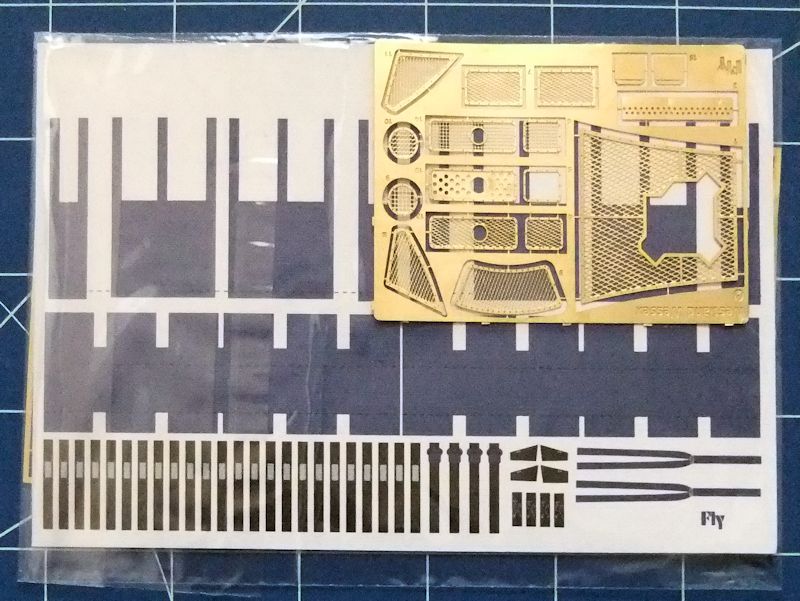 Ein netter Trick ist es, die Kühlerumfassung für den Motor am Bug des "Helis", mit der roten Schutzplane zu versehen. Ferner sind auch das hintere Ölkühlerablaufgitter sowie viele Details im Cockpit aus Resin hergestellt. Dazu gehören die Überkopf-und die Mittelkonsole. Und so geht es weiter an Details. Für die Gestaltung der Kabine hat sich Fly ausgedacht, die Sitze als Rahmen zu erstellen, auf den dann die beim Original aus blauen Zeltplanen bestehenden Sitzflächen aus Papier angepasst werden. Auch mit sämtlichen Gurtzeug wird so verfahren. Natürlich befinden sich die nötigen Schnallen und Beschläge an den Ätzteileplatinen.