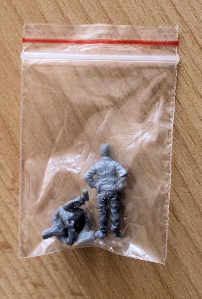 Alle Bauteile sind ohne Grat und sehr sauber verarbeitet. Alles ist bruchsicher verpackt. Die Zwischenräume sind mit Schaumstoff ausgefüllt, so dass beim Transport nichts kaputt gehen kann. Dem Bausatz liegen noch zwei Figuren von Caesar Miniatures bei.