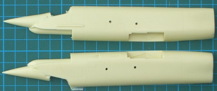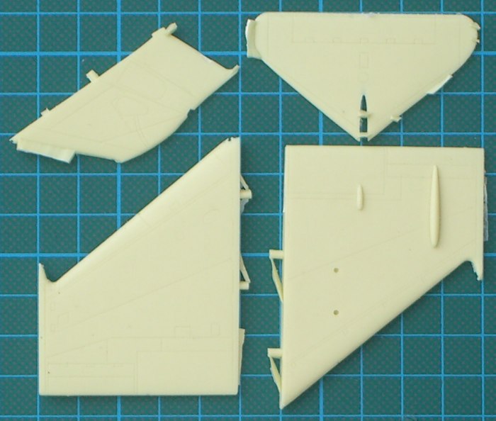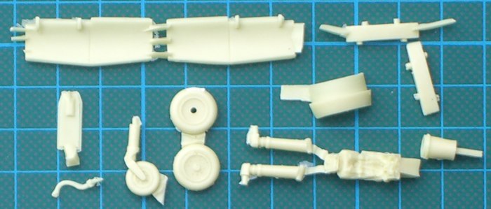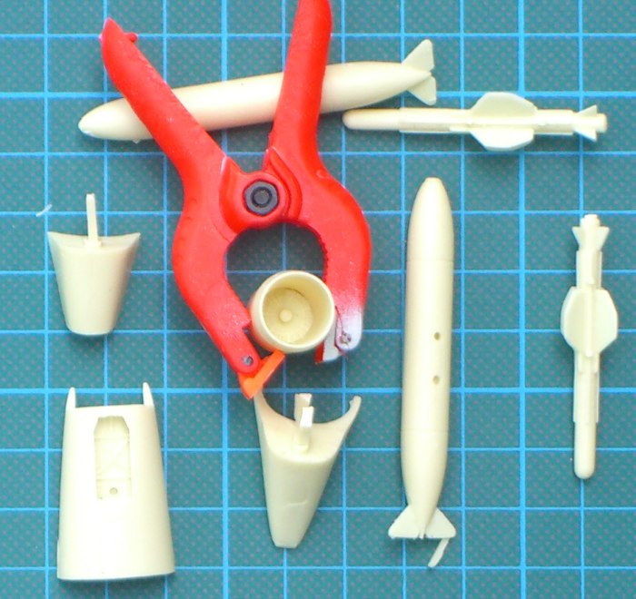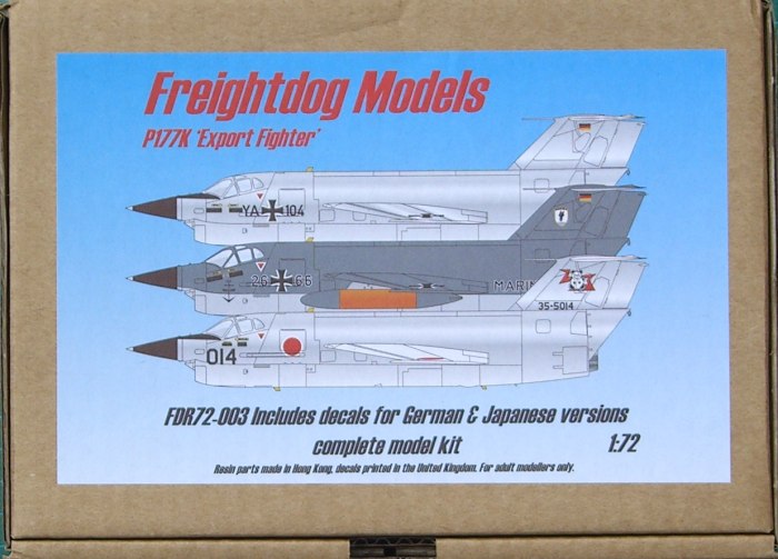 Bausatz: Freightdog Models hat die Teile des Bausatzes bei Anigrand Craftswork in Hong Kong produzieren lassen. Somit geht die Qualität der Bauteile in Ordnung. Nicht so schön ist die fehlende Montageskizze. Es gibt immerhin einige textliche Hinweise. Für das Cockpit gibt es einen ordentlichen Schleudersitz. Leider gibt es für das Instrumentenbrett kein Decal. Dafür gibt es aber für die fiktive Bewaffnung ein paar Raketen. Die klare Vacukanzel ist doppelt vorhanden.