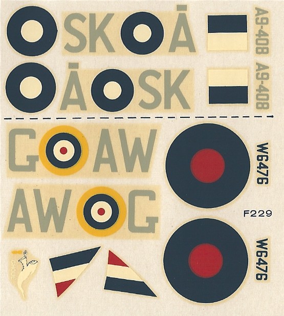 Das was es damals von Frog an Cockpiteinrichtung gab, sollte man besser übergehen. Außenlasten wurde in den Baukasten keine beigefügt, dafür aber ein Klarsichtteil, das die Kuppel am "Kinn" der Mark II darstellt. Außerdem erlauben die beigefügten passablen Abziehbildersätze auch noch den Bau einer australischen Maschine, was man als weiteres Plus werten kann.