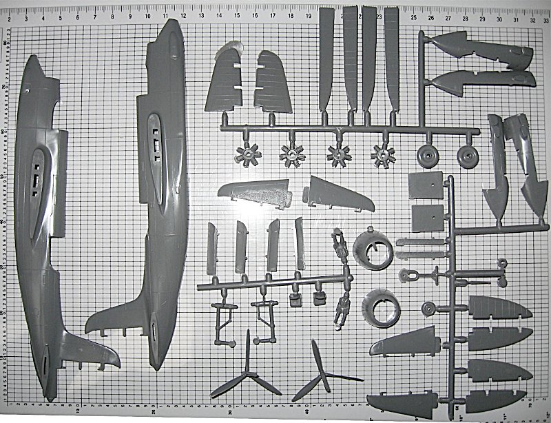 Ansonsten gibt es dann leider nicht viel mehr Positives aufzuführen. Die Zeichnung der erhabenen Panelines ähnelt nur recht vage dem Original und ist eher hinderlich als nützlich. Insbesondere die gleichmäßig linierten beweglich ausgelegten Steuerflächen wirken schon beinahe abschreckend unnatürlich. Allerdings hat Frog akkurate Triebwerksnachbildungen beigefügt, die sich selbst heute noch sehen lassen können. Auch die Propeller sind sehr ordentlich gelungen.