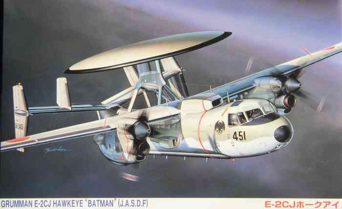 Vorbild: : Vor 40 Jahren im Herbst 1965 gab die Grumman E-2 Hawkeye ihr Einsatzdebüt vor der Küste Vietnams. Seit dieser zeit steht sie bei der US-Navy in verschiedenen Versionen im Einsatz. Geflogen wird dieser Typ u.a. noch von der französischen Marine, der japanischen Luftwaffe sowie den israelischen Luftstreitkräften. Der Erstflug fand am 21. Oktober 1960 statt. Als erste Einsatzversion galt die E-2A, von der 59 Serienflugzeuge entstanden. Alle E-2A wurden zu E-2B umgerüstet. Seit 1971 wird die E-2C gebaut. Diese unterscheidet sich u.a. von den Vorgängern durch einen größeren Kühler auf dem Vorderrumpf, dem gestreckten Bug und stärkere Triebwerke. Weitere Weiterentwicklungen sind im Innern verborgen.