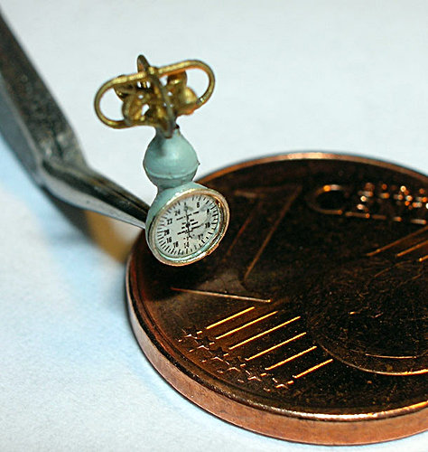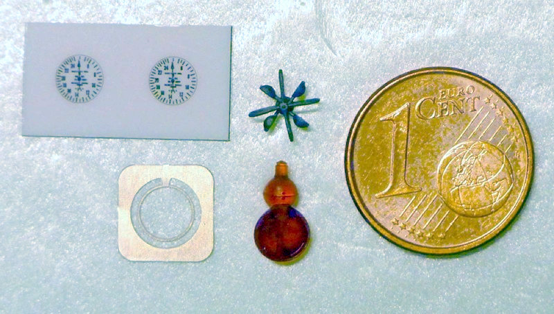 Dieses Set ist ein kleines Kunstwerk. Ob der Hauptkörper gedruckt ist, weiss ich nicht - Angüsse sieht man nirgens, aber das Schalenkreuz mit dem Schutzkorb drumrum ist nur ein einziges Bauteil und das ist mit Sicherheit "gedruckt". So etwas hab ich noch nicht gesehen. Einmalig! Der Bau ist simpel. Zwei Teile bemalen, zusammensetzen, Anzeigeblatt aufkleben, geätzten Rahmen abringen, fertig!