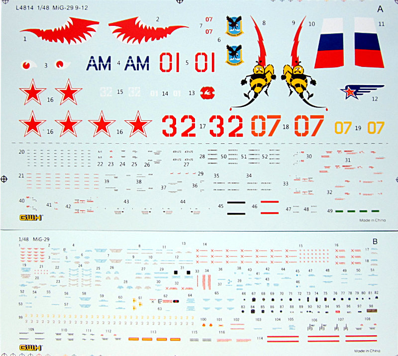 Die Abziehbilder sind sauber gedruckt und matt. Ich hatte bisher keine gelegenheit die Decals von GWH zu testen, so dass ich zu deren Qualität nichts sagen kann.