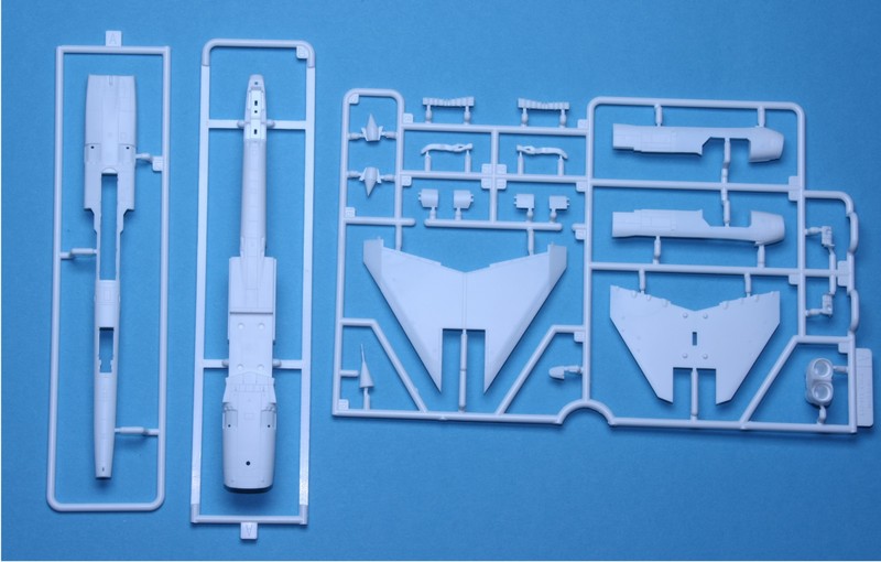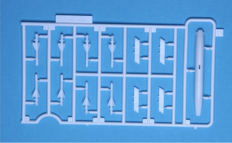 Das massive Fahrwerk gefällt durch eine tolle und feine Darstellung, im fertigen Zustand sollte es fein aussehen und dem Original entsprechen. Alternativ kann man das Modell auch auf einen Ständer stellen. Die Klarsichtteile verdienen ihren Namen und die Hauben lassen sich in beiden Zuständen wahlweise montieren. Der Bausatz enthält auch einen Spritzrahmen C mit Raketen sowie einen anderen Bauch(Zusatztank), ähnlich der English Eletric Lightning. Damit lassen sich entsprechende Einsatzvarianten bauen, welche aber unter die Kategorie „What If“ fallen.