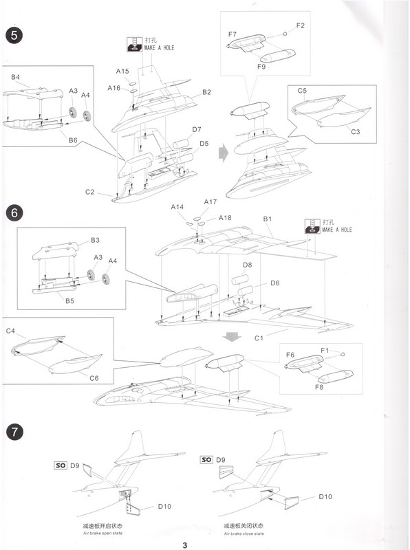Der Bau wird von der Anleitung sehr gut und klar in 10 Schritten gezeigt. Für die Bemalung und das Anbringen der Abziehbilder sind farbige Drucke vorhanden, einmal recht klein auf der Rückseite des Kartons für die getarnte Maschine im üblichen Dark Sea Grey und Grün sowie als fast A3 Druck für die Maschinen in Hemp. Die Darstellung entspricht hier 1/144. Andersherum würde das Ganze m.M. nach mehr Sinn machen, kann man doch den Tarnverlauf unter der Annahme der Richtigkeit direkt abgreifen für die Herstellung von Klebemasken zur Lackierung. Kurioserweise ist der Farbton wie auch schon auf dem Karton eher ein Desertpink. Die Angabe für den zu verwendenden Farbton, welche sich im Übrigen auf das Programm von Gunze beziehen, ist aber richtig für einen dem "Hanf" entsprechenden Ton.