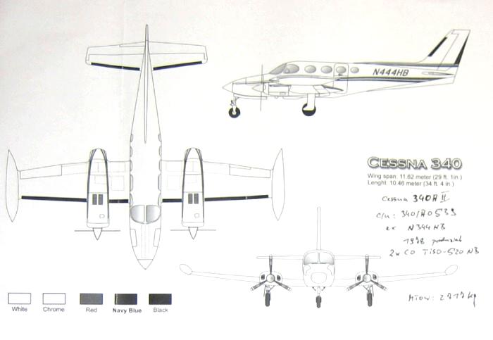 Bei Gremlin gibt es Decals für die N444HB (ohne weitere Infos in der Bauanleitung) - eine Maschine der amerikanischen AAA Air Ambulance - bei AERO National Inc. in Washington beheimatet. Diese 340A II hat die Werk-Nr. 340A053, wurde 1978 produziert und ist für eine Abflugmasse (MTOW) von 2717 kg zugelassen. Insgesamt 1277 mit Druckkabine versehene Maschinen der 340er Serie sind hergestellt worden.