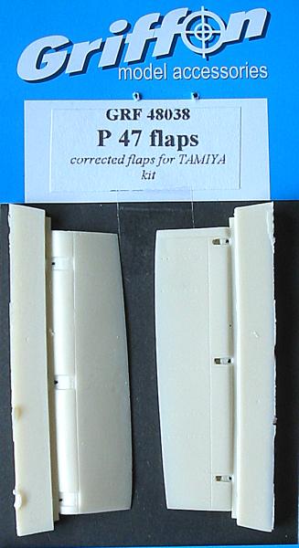 Dieser Satz enthält die Landeklappen für die P-47 von Tamiya. Die Bausatzteile sind zwar recht schön, haben jedoch einen deutlichen Fehler. Damit sie sowohl eingefahren wie ausgefahren dargestellt werden können, hat Tamiya eine "Stufe" in die Landeklappe modelliert. Diese war allerdings im Original nicht vorhanden, d.h. die Klappe ist glatt. Diesen Fehler beheben die Griffon Teile.