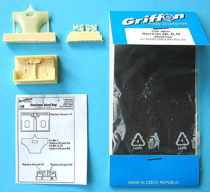 Wem der etwas vereinfachte Fahrwerksschacht der "Hurricane"-Modelle von Hasegawa nicht gefällt, findet hier eine einfache Möglichkeit, sein Modell an dieser Stelle nachhaltig zu verfeinern. Er braucht hierzu lediglich den aus nur vier Teilen bestehenden Detail-Satz GRF48044 von Griffon.