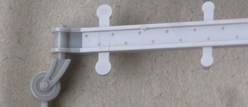 Der Zentralschwimmer verfügt über alle externen Verstärkungsprofile, sowie eine feine, versenkte Nietendarstellung, ebenso wie natürlich auch alle Blechbereiche des Rumpfes oder der Stützschwimmer. Für einen sicheren Stand des Modells empfehle ich den Einbau einiger Angelbleie weit vorne im Zentralschwimmer. Zwar verfügt der Bausatz auch über einen Stützbock, aber der sollte besser nur "Kulisse" sein, denn in jedem Fall ist es besser, wenn das Modell ohne die Stütze unter dem Heck des Zentralschwimmers von alleine im Slipwagen stehen bleibt.