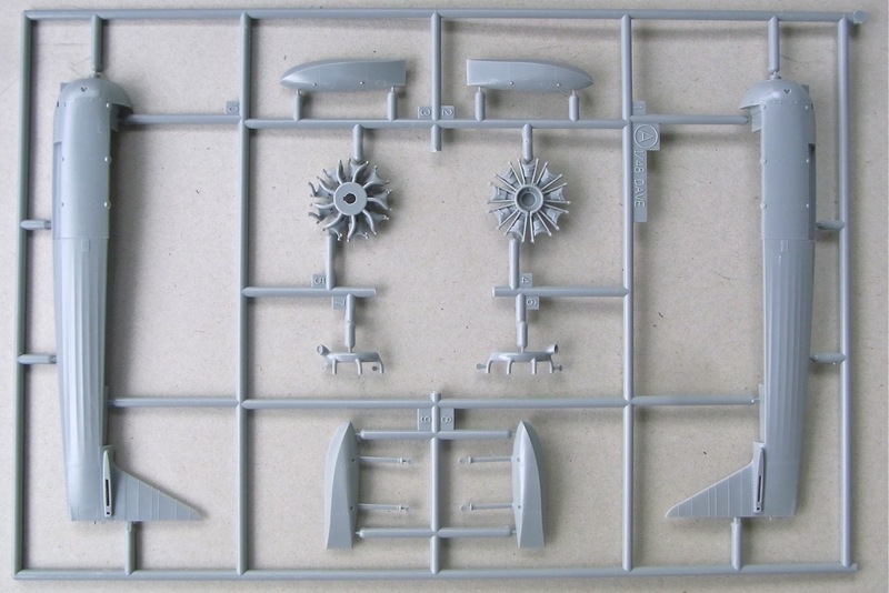 Der Motor besteht aus eine Vorder- und einer Rückseite. An der Vorderseite ist die Hälfte der notwendigen Zündkabel, sowie die Stösselstangen anmodelliert. An der Rückseite sind die Kraftstoffzuleitungen, sowie etwas, was wohl auch Zündkabel sein sollen, bereits mit anmodelliert. Das mag manch einem als zu wenig erscheinen, allerdings ist die Motorrückseite, nach der Montage der Abgass-Sammelrohre und dem Einbau in die NACA-Haube, quasi unsichtbar.