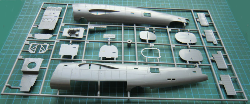 Öffnet man hier den Karton so fallen zuerst die komplexen Glasteile ins Auge. Hier ist Hasegawa einen neuen Weg gegangen. Einige kleine fummelige Glasteile sind einfach in die Struktur der großen Teile integriert! Tolle Idee!!! Typisch für Hasegawa ist aber auch, dass es im Inneren des Modells nur eine rustikale Grundausstattung gibt. Die ersten Zubehörhersteller haben schon darauf reagiert. Der Bombenschacht hat eine brauchbare Inneneinrichtung und kann offen gelassen werden. Für die Tragfläche gibt es einen Mittelholm. Diese Tatsache ist sehr gut geeignet für die Steckmontage des Flügels. Nicht jeder hat in seinem Zimmer Platz für eine Liberator. Die Ruder sind an den Flächen und Leitwerken angespritzt aber mit tollen Hinterschneidungen versehen. An den Tragflächen sind die Motorgondeln angespritzt. Hier muss nichts mehr ausgerichtet werden. Gut getroffen ist auch das typische Profil der Tragflächen. Dafür war die Liberator bekannt.
