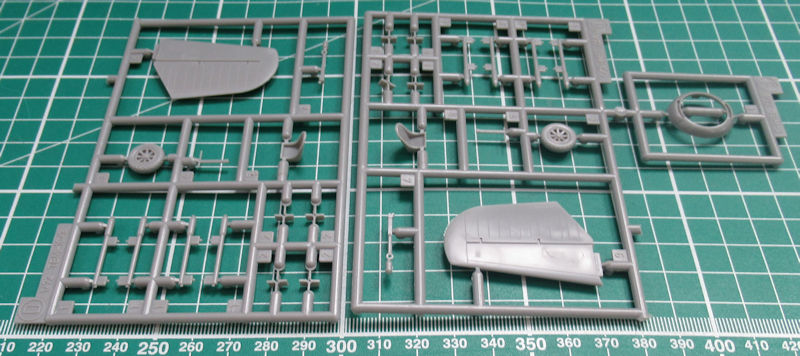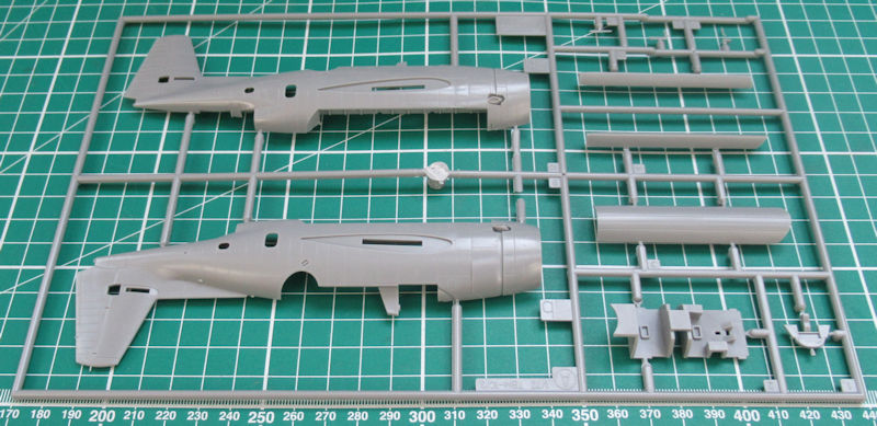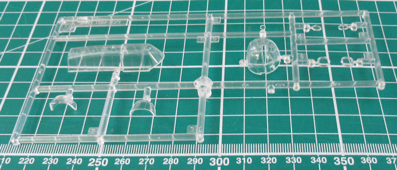 Die Spritzgussteile sind nach wie vor noch auf der Höhe der Zeit. Es gibt feine versenkte Strukturen mit schönen Details. Allerdings haben Hasegawa-Bausätze aus den 1990er Jahren wenig Details im Cockpit zu bieten. Die klaren Resinteile sind leicht milchig.