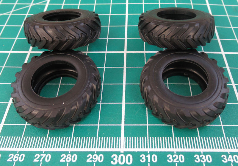 Für die Schwinge gibt es Hubzylinder. Diese sollen nicht verklebt werden damit die Einheit beweglich bleibt. Hier finden O-Ringe ihre Anwendung. Leider habe ich die drei kleinen Exemplare leider nicht gefunden. Es gibt als Arbeitsgerät leider nur eine Schaufel. Eine Palettengabel wäre auch nicht schlecht gewesen… Die Gummireifen werden auf die einteiligen Felgen gezogen und dann auf die Achsen gesteckt. Rückleuchten und Blinker sind leider nicht eingefärbt. Eine Rundumleuchte gibt es leider nicht.