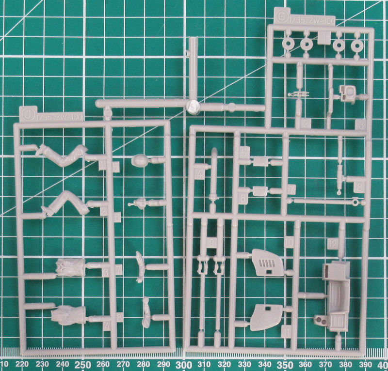 Fazit: Der Maßstab 1/35 ist für ein Zivilfahrzeug ungewöhnlich. Hasegawa hat aber inzwischen eine ganze Reihe von Baustellenfahrzeugen herausgebracht. So passt dieser HITACHI ZW-100-6 sehr gut ins Programm. Schon aus dem Kasten ist ein gut detailliertes Modell ohne Bemalung möglich! Bei dieser hervorragenden Passung sehr empfehlenswert!