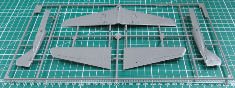 Die Rumpfspitze wird separat an das Rumpfmittelteil angeklebt und die Tragfläche wir aus drei Teilen zusammengesetzt. Leider gibt es hier und beim Seitenruder keine scharfen Hinterkanten. Etwas einfach gehalten sind die Mitsubishi Sternmotoren. Allerdings ist von denen durch die engen Motorverkleidungen wenig zu sehen.