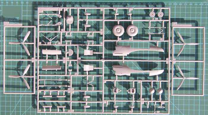 Bausatz: Der letzte neue Bausatz der Lancaster erschien 1980 bei Airfix und der Bausatz war damals das Maß aller Dinge. Hasegawa hat nach 25 Jahren diesen wichtigen Bomber des WK II zum Vorbild genommen und einen tollen Bausatz produziert. Die Oberfläche entspricht nach dem Ausrutscher Heinkel He 111 H/P dem Firmenstandard. Der Bausatz ist maßhaltig und frei von größeren Schwächen. Schon ein erster Blick in den riesigen und prall gefüllten Karton verrät, dass hier in Japan wieder die Profis am Werk waren. Der Flügelansatz wird wieder mit einem Holm verstärkt. Diese Konstruktion ermöglicht eine Montage der Tragflächen nach der Lackierung. Beim zweiten Blick stellte ich sofort fest, dass auch die Cockpitausstattung des Bausatzes firmentypisch ist, d.h. etwas einfach und rustikal. Es sind aber die Seitenwände des Cockpits strukturiert und mit ein wenig plastischer Bemalung ist da schon was getan. Die Sitze vertragen ein paar Gurte. Detailsets gibt es von Flightpath und von Airwaves für die Airfix-Lancaster. Beide sind jedoch nicht besonders preiswert und kosten um die 20 €. Gurte lassen sich auch aus Zigarettenpapier oder Alufolie preiswert herstellen.