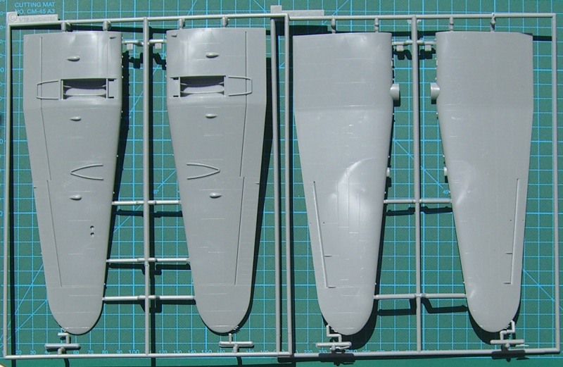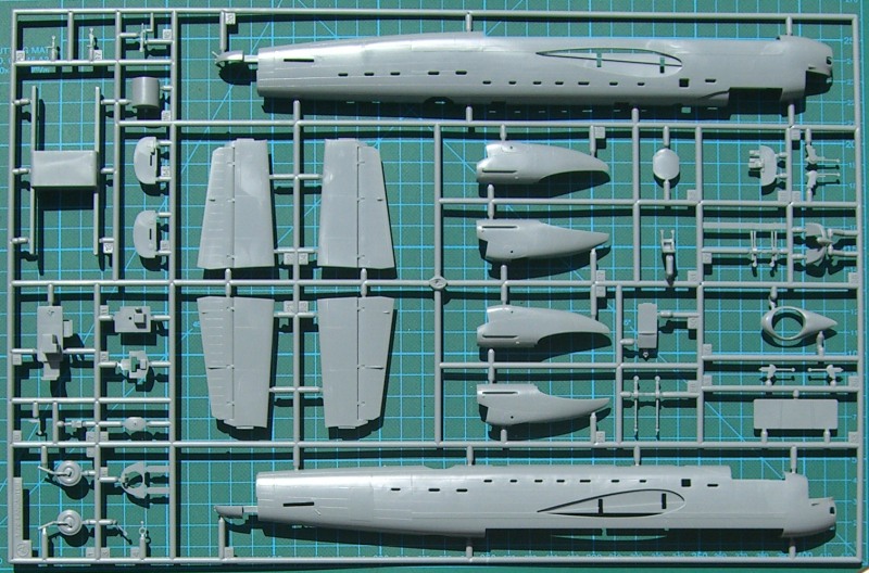 Die Spritzgussteile sind aus den vorhergehenden Bausätzen bekannt. Hiermit bietet Hasegawa die Möglichkeit frühe und späte Versionen darzustellen. Dafür gibt es beiden Seitenleitwerke und auch die unterschiedlichen Fensteranordnungen. Ob allerdings die Version von 1952 noch Waffen in den Waffenständen hatte, das zweifel ich an. Ein paar Bauteile wandern in die Restekiste. Ein genaues Studium verlangt die Bauanleitung. Vor dem Zusammenkleben der beiden Rumpfhälften müssen noch Öffnungen für das hintere große Fenster und des Teiles G11 freigelegt werden. Dafür entfällt der Einbau des Bombenschachtes. Die Positionierung und der Anbau des Rettungsbootes wird sehr gut in der Bauanleitung erklärt.
