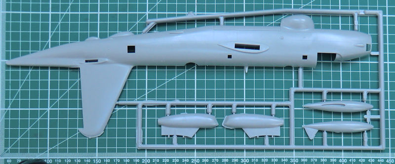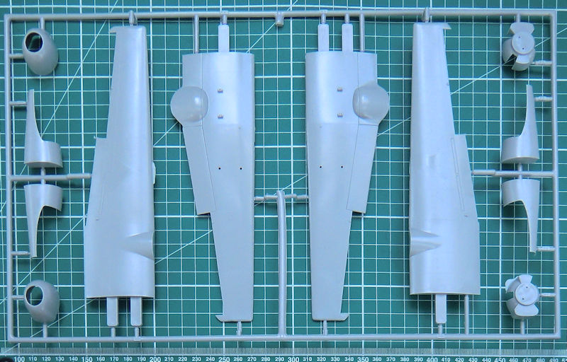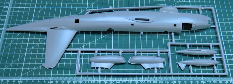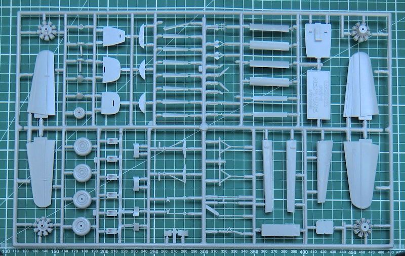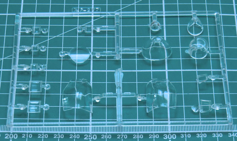 Im attraktiven praktischen Stülpkarton befinden sich gut verpackt vier hellgraue Spritzgussrahmen mit 91 Teilen, ein Klarsichtrahmen mit 15 Teilen, einen großen Decalbogen und eine Bau- und Bemalungsanleitung. Erstere ist wohl schon ein paar Jahre bei Hasegawa im Einsatz. Darin sind auch paar Fotos vom Original abgedruckt. Den Spritzgussteilen sieht man das durchaus an. Es gibt erhabene Strukturen und die Details sind etwas grob gehalten.