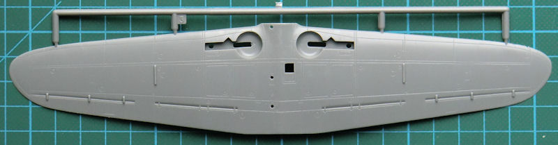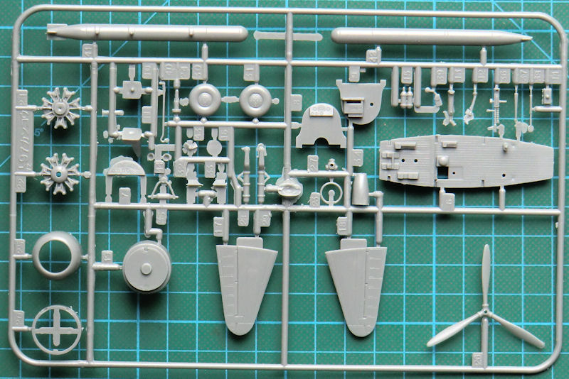 Für die neue 800 kg-Bombe gibt es ein Metallgussteil und drei Fotoätzteile. Das Fahrwerk ist recht einfach aber alles ist vorhanden. Die Kanzel kann alternativ im hinteren Bereich offen angeklebt werden. Dafür gibt es dann ein Abwehr-MG.