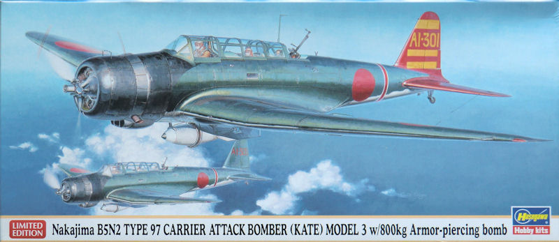Vorbild: Die Nakajima B5N mit dem alliierten Codenamen „Kate“ war der Standarttorpedobomber der kaiserlichen japanischen Marine im WK II. Zu Beginn der Kampfhandlungen 1941 war sie den alliierten Mustern deutlich überlegen. Sie wurde erfolgreich über Pear Harbor und in den Kämpfen im Korallenmer und um Midway eingesetzt. Geflogen wurde die B5N von drei Mann.