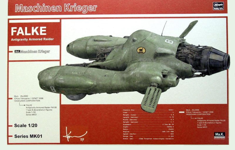 Nachdem WAVE vor geraumer Zeit bereits Lizenzen an der Produktlinie SF3D von Kow Yokoyama erworben und einige interessante Modelle auf den Markt gebracht hatte, zog nun auch Hasegawa nach und ist gerade dabei ein recht eindrucksvolles Set zu entwickeln! Gleich ihr erstes Kit in dieser Reihe schlug bei Fans und SciFi-Modellbauern ein wie eine Bombe... der "Armored Antigravity Raider Pkf.85 FALKE".