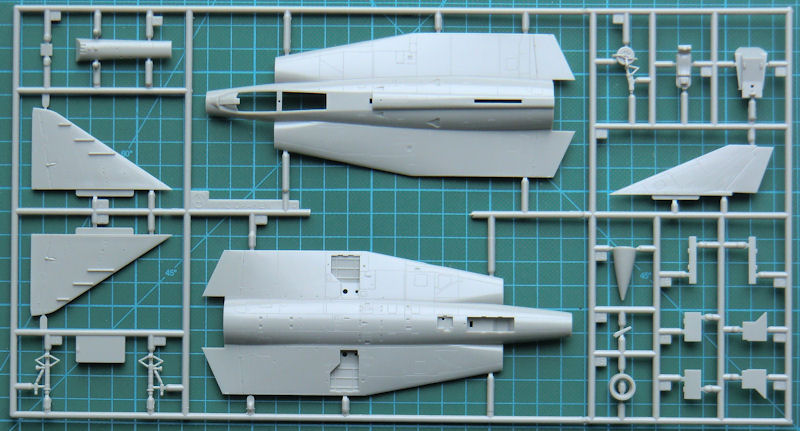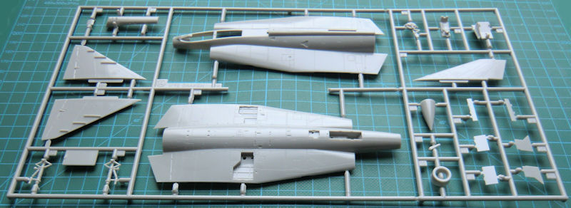 Die Draken ist ein grundsolider Bausatz mit feinen versenkten Strukturen. Das Cockpit ist recht einfach. Es besteht aus vier Teilen. Die Instrumente werden mittels Decals dargestellt. Rumpfober- wie Rumpfunterseite besitzen auch die anmodellierte innere Tragfläche. Die äußeren Teile bestehen aus je einem Stück und letztere haben eine scharfe Hinterkante. Gleiches gilt auch für das Seitenleitwerk.
