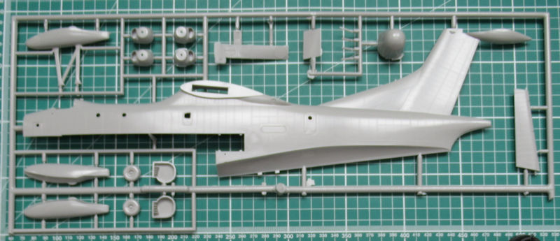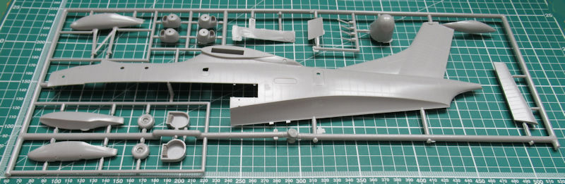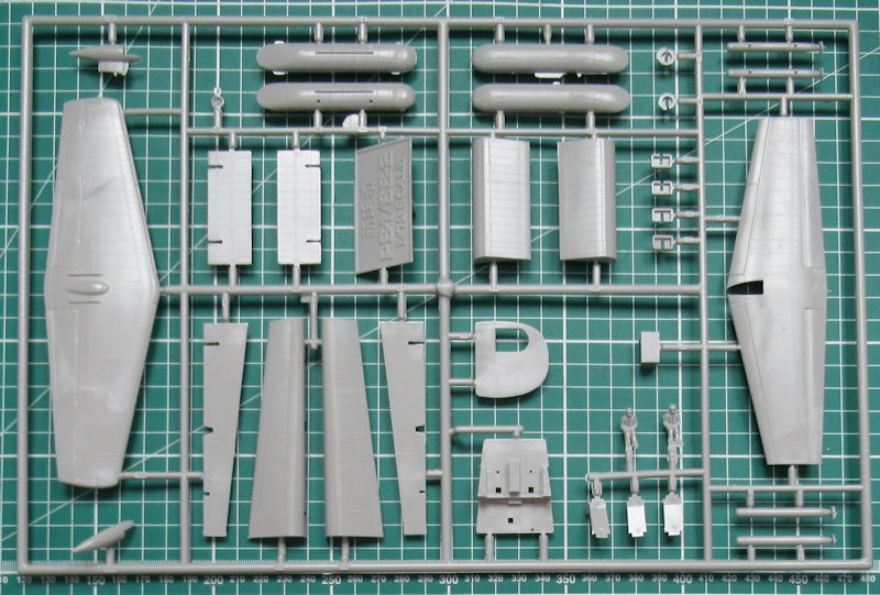 Der Bau beginnt mit dem Cockpit. Das ist immerhin mit ein paar Konsolen und den Sitzen zu versehen. Aber für die Instrumente gibt es ein paar Decals. Das untere Rumpfvorderteil besteht aus einem Stück und es wird von innen mit dem Bugfahrwerksschacht versehen. Ein paar Klappen können beweglich bleiben. Leider haben die Ruder keine scharfen Hinterkanten.
