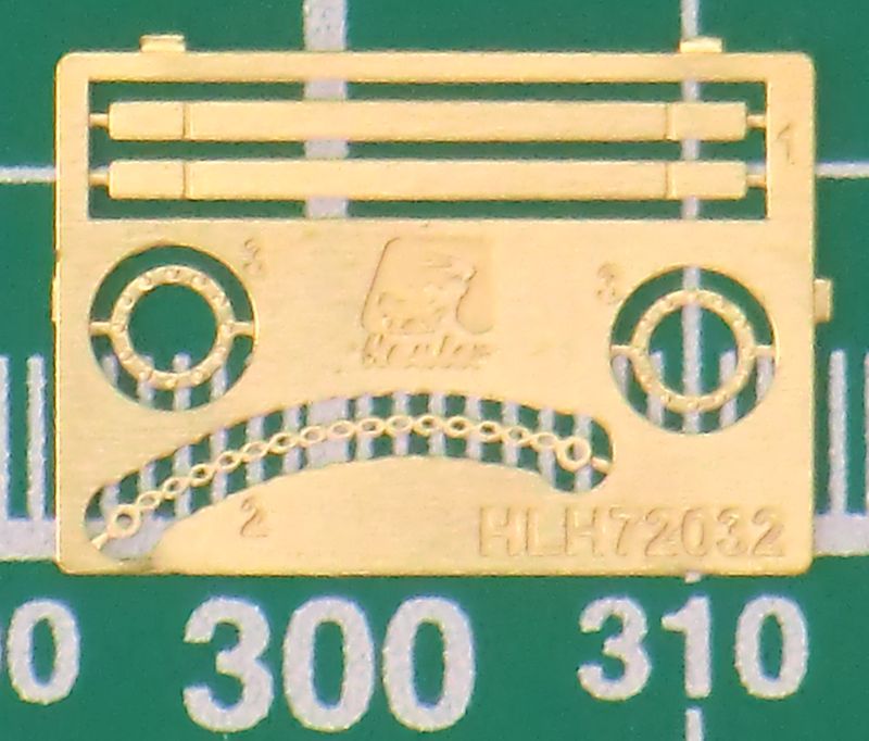 Die beiden Achshalterungen müssen ein wenig gesäubert werden. Einzig der klobige Anguss der Pritsche ist nicht so einfach zu entfernen. Aus Metall gibt es auch eine kleine Kette auf der Platine.