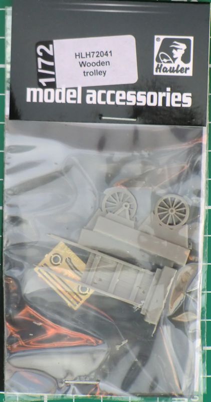 Hauler liefert hier einen sehr universell einsetzbaren Resinbausatz eines Holzkarrens in 1/72. Hauler liefert hier sieben sauber gegossene Resinteile, ein kleinen Fotoätzteilbogen und die übersichtliche Bauanleitung..