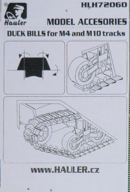Hauler bietet in seiner typischen, leider etwas unpraktischen, Tütenverpackung ein Detailset für die verschiedenen Sherman-Bausätze im Maßstab 1/72 an. Die kleine Bauanleitung zeigt wie diese geätzten Teile verbaut werden sollen.